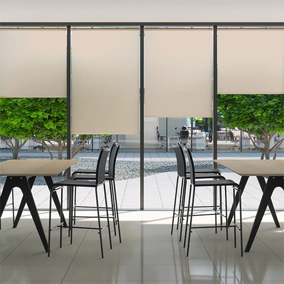 Effectively shade your commercial windows with our fire retardant and child safe Contract City Champagne Roller Blind.