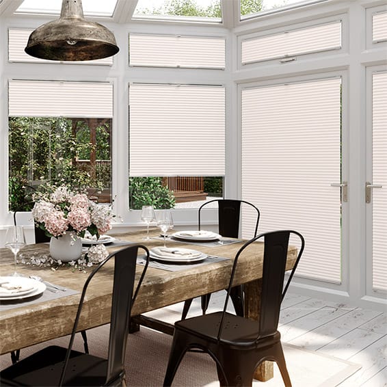 Light and airy, this EasiFIT DuoLight Nude pleated blind lets your conservatory to bask in a gentle glow, with a sun-kissed look fabric adorning your windows.