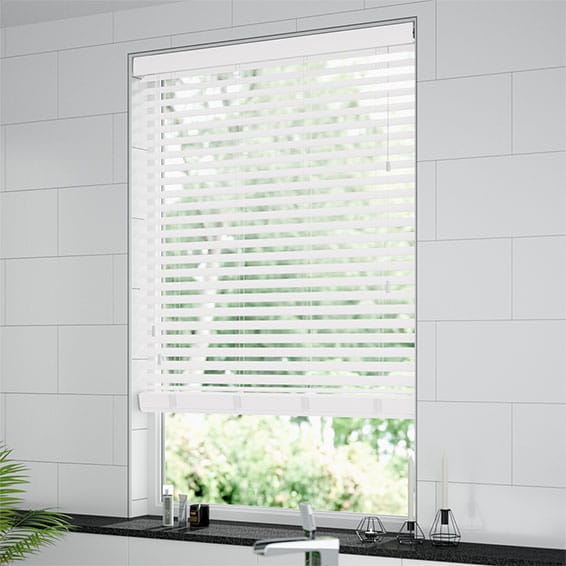 The crisp white colour of this faux wood blind gives you a blank canvas to express your design style in the rest of the room, not forgetting it’s really practical too! The strong faux wood slats can go in any room of the house, so they’re a great choice if you’re looking to update your kitchen or bathroom.