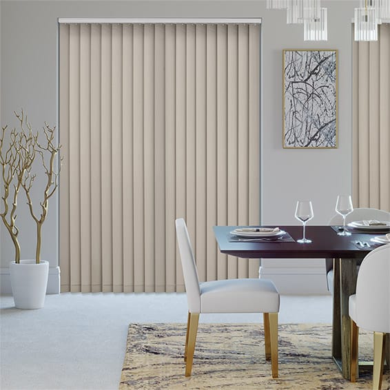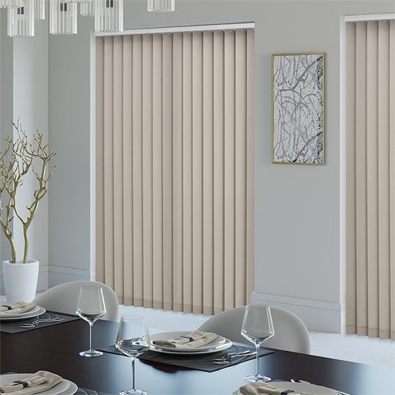 The Utopia Wheat vertical blind is a sophisticated and very popular colour. Similar to taupe, sitting somewhere between neutral and grey, it’s a lovely colour that looks good all over the home.